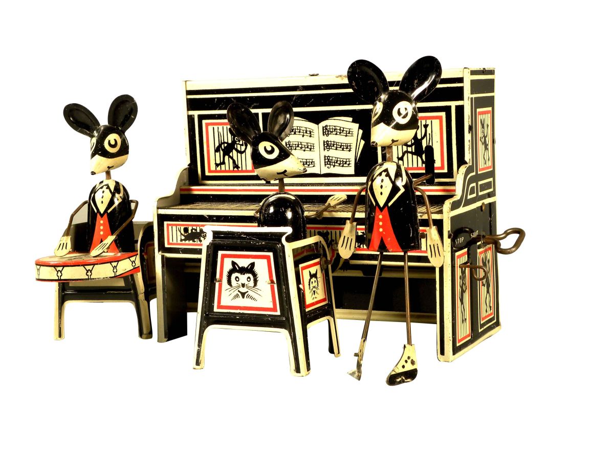 Marx Merry Makers Tin Wind Up Toy. Louis & Marx and Company, NY. Missing mouse on top of piano otherwise excellent condition. Piano measures 7 X 5 inches.