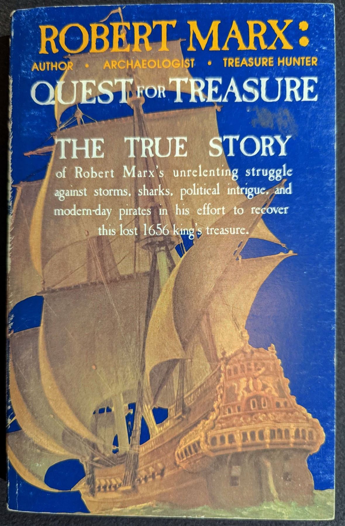 Marx, Robert F. QUEST FOR TREASURE. Ram Publishing. 1982. 12mo. xii, (2), 272, (2) pages. Dallas. first edition, first printing. original pictorial card covers. illustrations. metal detector dealer listings. near Fine. This book presents the story of the author's search for, and successful salvage of, the "Maravillas" (which the author spells "Maravilla"). The "Maravillas" sank in 1656 on Little Bahama Bank. Scarce. Lot weight: 0 lbs 14oz. Subject(s): Sunken Treasure.