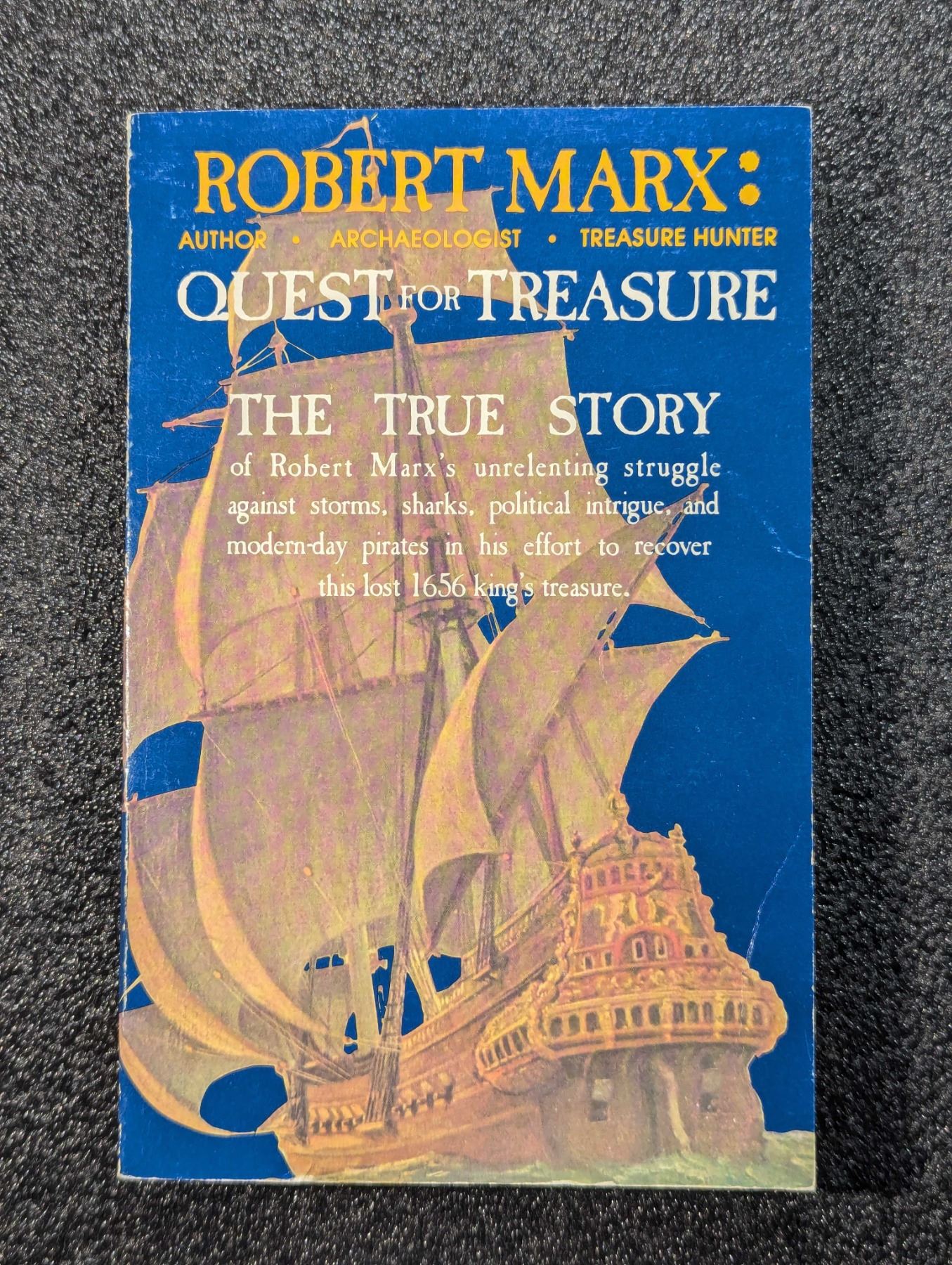 Marx, Robert F. QUEST FOR TREASURE. Ram Publishing Company, Dallas. 1982. 8vo. xii, (2), 272, (2) pages. original pictorial card covers. Signed by the author. Frontispiece photo. B&w photos and illustrations throughout. English text. The David Baker Library. Fine. This book is story of the author's search for, and successful salvage of, the 'Maravillas ' (which the author spells 'Maravilla'). The 'Maravillas' sank in 1656 on Little Bahama Bank. Lot weight: 0 lbs 14oz. Subject(s): Sunken Treasure.