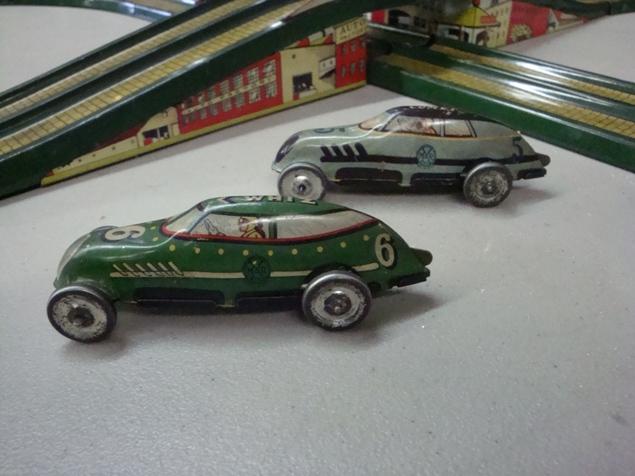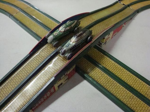 Early Road Racer Set with Whiz and Comet Racers. All pieces of track included. Cars work fine. No key.