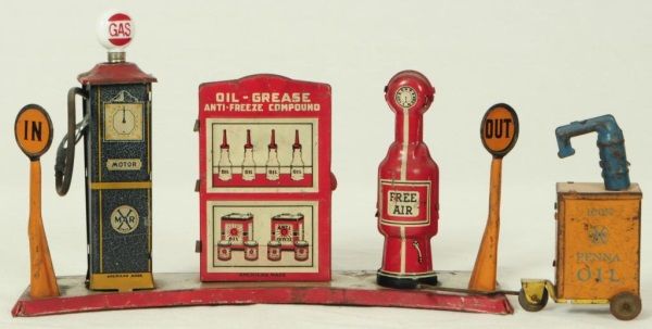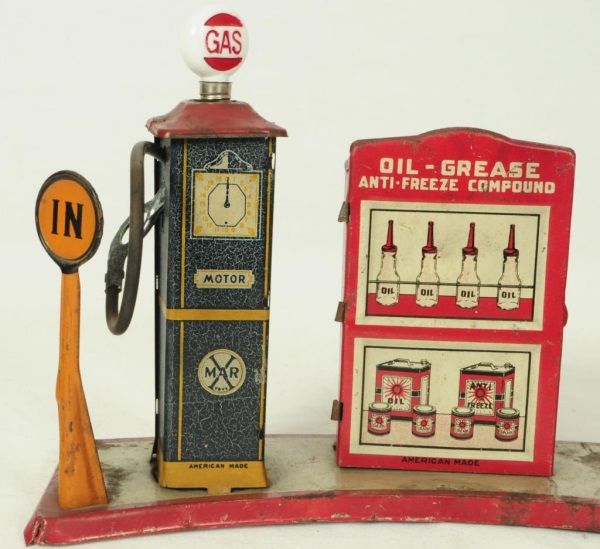 Gas Pump/Grease Station (9-1/4" x 2-3/4"). Penna Oil Pump (4" H).