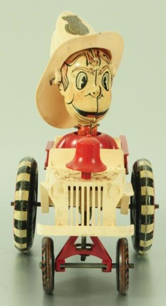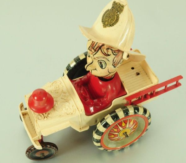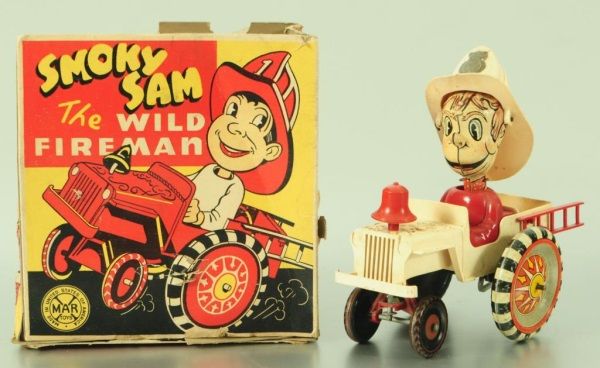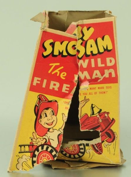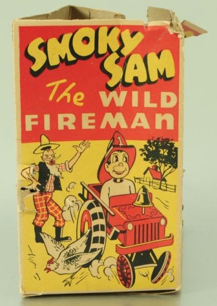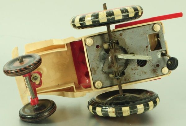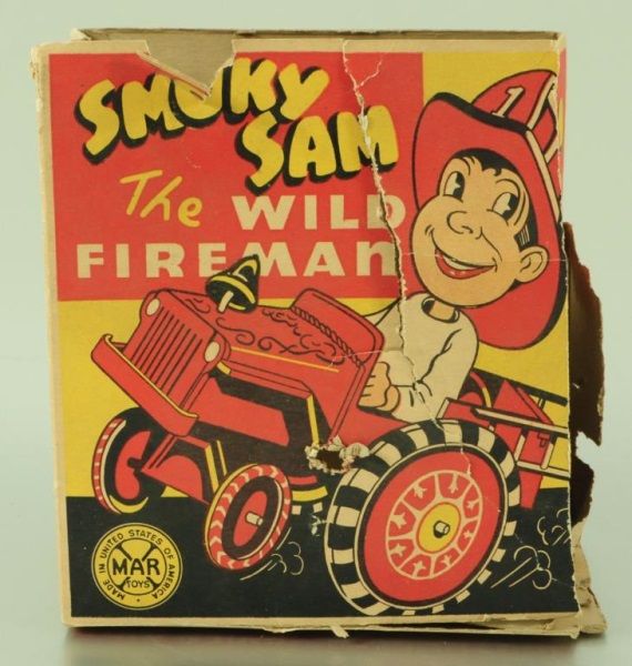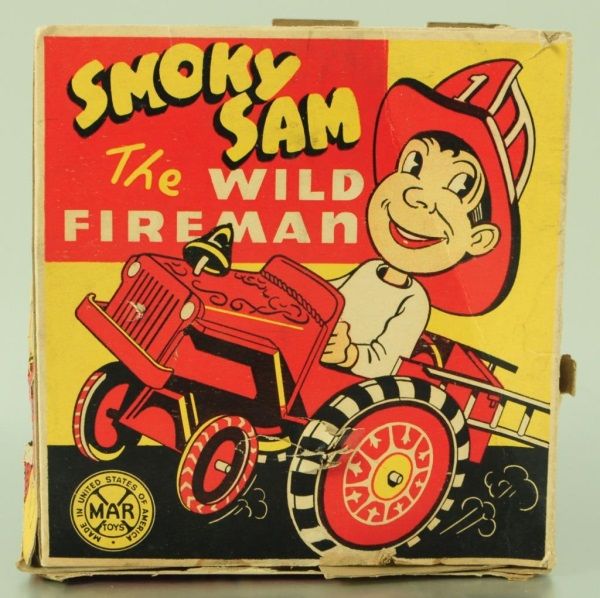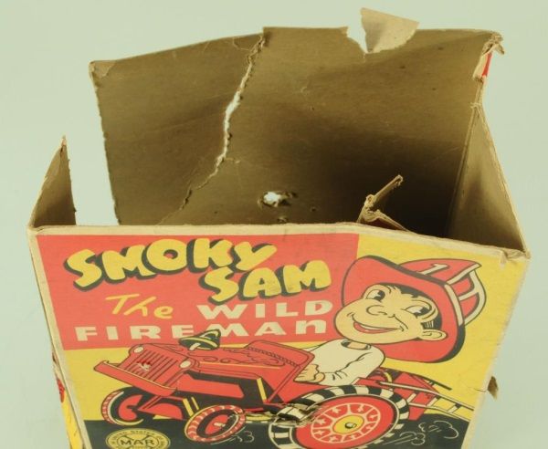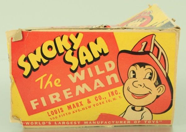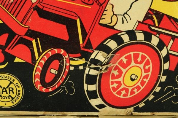 Tin and Plastic. With Original box (box has condition issues). 6-3/4" L.