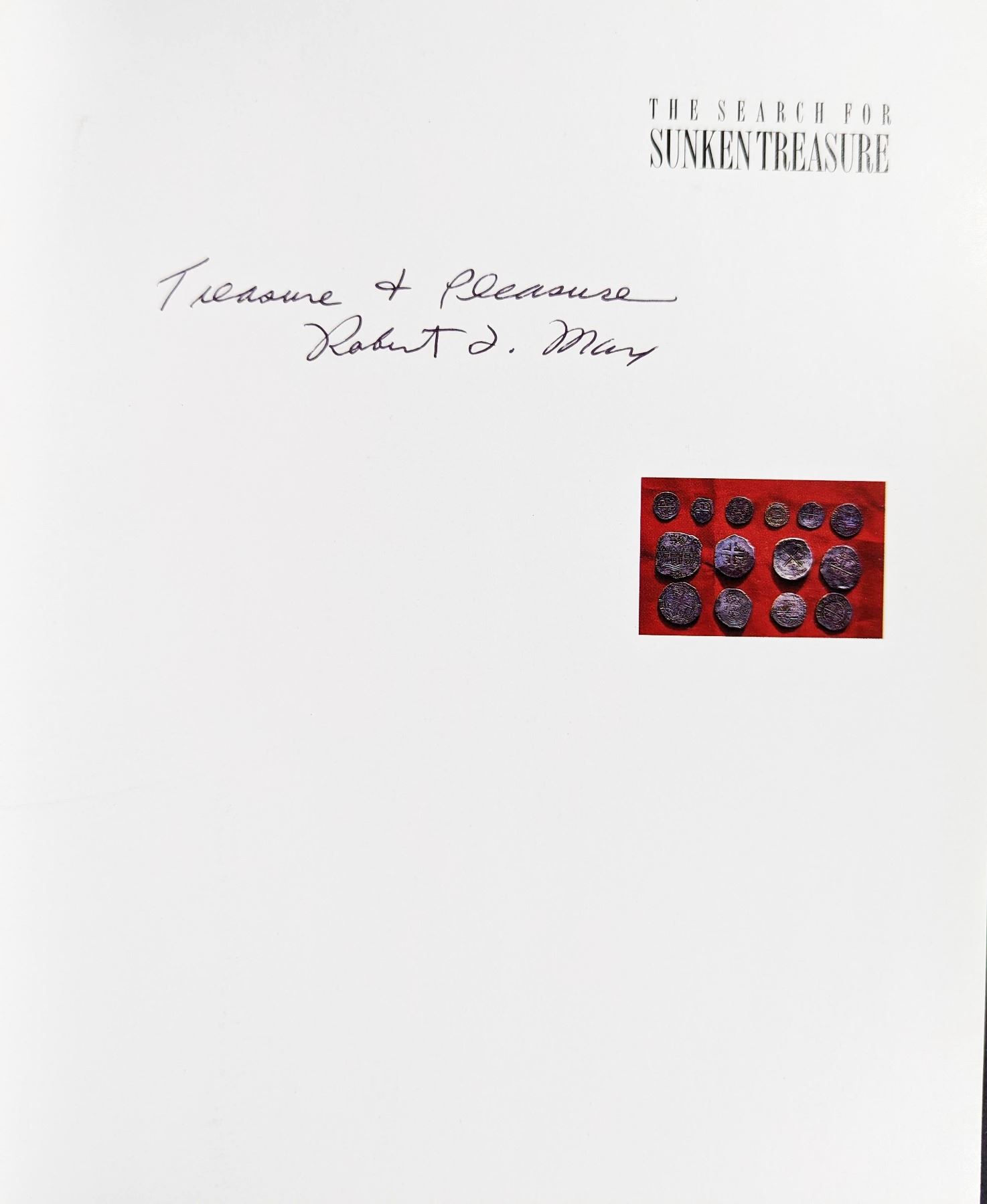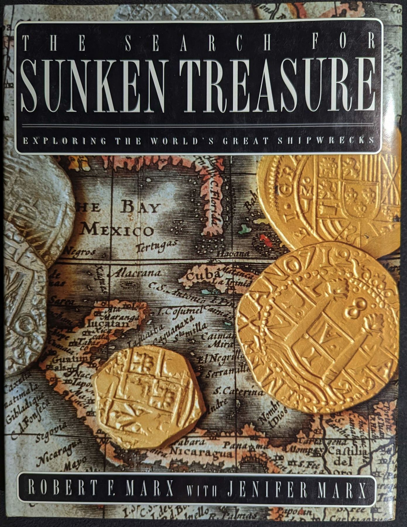 Marx, Robert F. with Jennifer Marx. THE SEARCH FOR SUNKEN TREASURE. EXPLORING THE WORLD'S GREAT SHIPWRECKS. Key Porter Books, Ltd. 1993. 4to. 192-pages. Toronto. first edition. original black cloth, gilt; dust jacket. frontispiece. illustrations. bibliography. Fine. inscribed by the author. This book overviews virtually all of the great treasure wrecks. Topics include the Spanish galleons, the Spanish Armada wrecks, the Manila galleons, Bermuda wrecks, the East Indiamen, and deep-water shipwrecks. It is profusely illustrated with many color images. Lot weight: 2 lbs 5oz. Subject(s): Sunken Treasure.