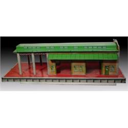 Marx Tin Freight Terminal. 9"Tall x 29" Long x 11" Wide, Excellent Condition.