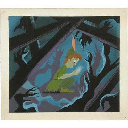 <B>Mary Blair - "Peter Pan" Animation Concept Painting Original Art (Disney, 1953).</B></I> Peter Pan holds the wounded Tinkerbell after the explosion of the Lost Boys' hideout, in this spectacular concept painting by Mary Blair. A similar artwork from this sequence can be seen in John Canemaker's book, <B>The Art and Flair of Mary Blair</B></I>. Rendered in tempera on heavy illustration paper, the art has an image area of 9" x 9". In Excellent condition. <BR><BR><b>Shipping:</b> Flat Material, Small (<a target="_blank" href="http://www.heritageauctions.com/common/shipping.php">view shipping information</a>)