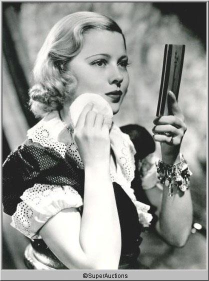 Mary Carlisle from The Max Factor Collection / (1) 8 x 10 Negative of Mary Carlisle Applying Face Powder Make-Up / (2) 8 x 10 Black & White Photographs