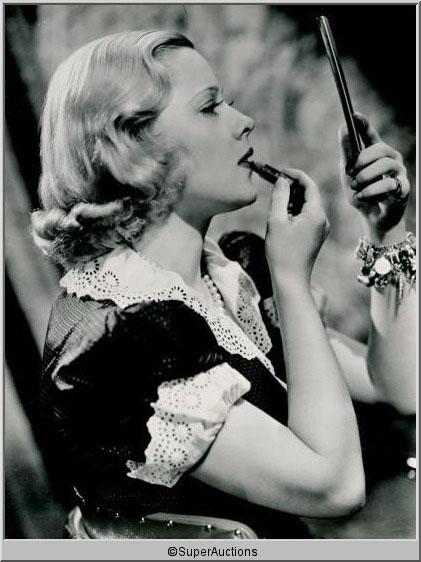 Mary Carlisle from The Max Factor Collection / (1) 8 x 10 Negative of Mary Carlisle Applying Lipstick Make-Up / (1) 8 x 10 Black & White Photograph