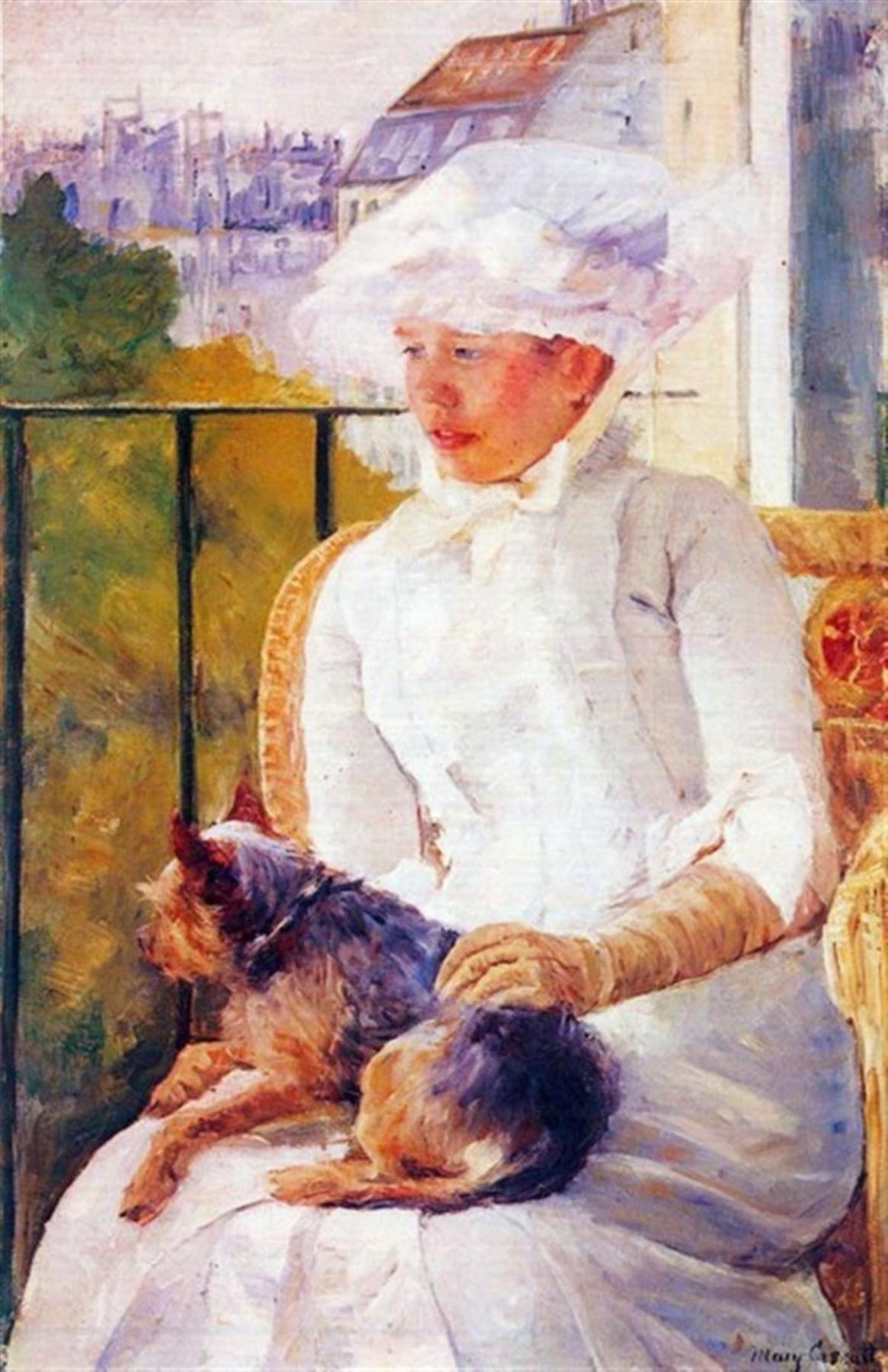 Artist: Mary Stevenson Cassatt (b. 1844 - 1926) Title: Lady With Dog Medium: Fine Art Reproduction Giclee on Canvas Image Size: Approximately 32 inches x 20.75 inches Framed: Unframed on Unstretched Canvas Birography: Born on May 22, 1844, in Allegheny City, Pennsylvania, Mary Cassatt was one of the leading artists in the Impressionist movement of the later part of the 1800s. Moving to Paris, her home for the rest of her life, she was befriended by Edgar Degas. After 1910, her increasingly poor eyesight virtually put an end to her serious painting, and she died in 1926.