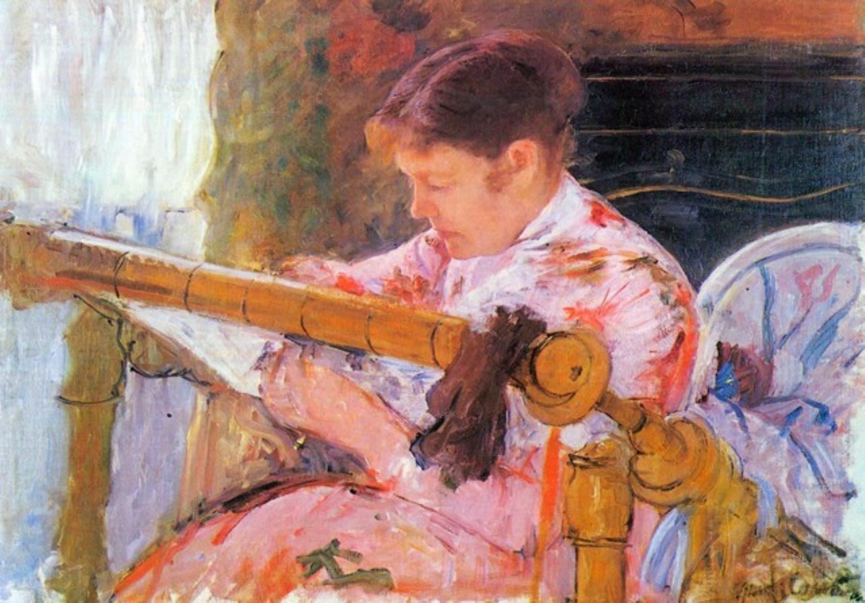 Artist: Mary Stevenson Cassatt (b. 1844 - 1926) Title: Lydia At The Cord Framework Medium: Fine Art Reproduction Giclee on Canvas Image Size: Approximately 22.25 inches x 32 inches Unframed on Unstretched Canvas Birography: Born on May 22, 1844, in Allegheny City, Pennsylvania, Mary Cassatt was one of the leading artists in the Impressionist movement of the later part of the 1800s. Moving to Paris, her home for the rest of her life, she was befriended by Edgar Degas. After 1910, her increasingly poor eyesight virtually put an end to her serious painting, and she died in 1926.