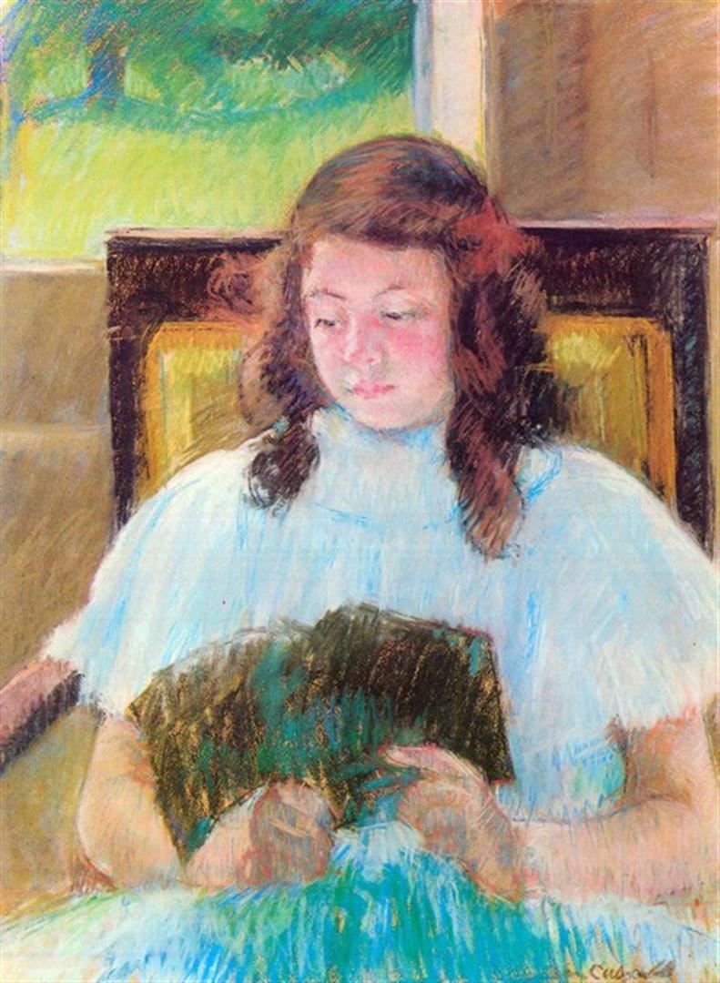 Artist: Mary Stevenson Cassatt (b. 1844 - 1926) Title: Young Girl Reading Medium: Fine Art Reproduction Giclee on Canvas Image Size: Approximately 20 inches x 14.75 inches Framed: Unframed on Unstretched Canvas Birography: Born on May 22, 1844, in Allegheny City, Pennsylvania, Mary Cassatt was one of the leading artists in the Impressionist movement of the later part of the 1800s. Moving to Paris, her home for the rest of her life, she was befriended by Edgar Degas. After 1910, her increasingly poor eyesight virtually put an end to her serious painting, and she died in 1926.