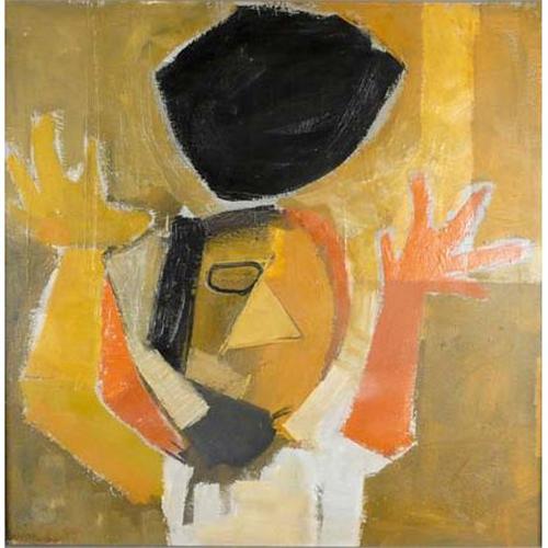 8067 Mary Chenoweth (1918-1999) Oil on Canvas "Black Sun" 1957 Kansas City Museum Exhibition label verso Signed lower left 29" x 29"