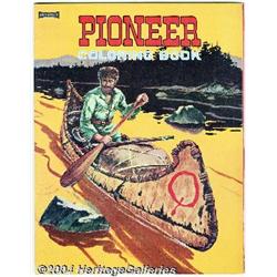 <B>Mary Gerard (attributed) - Pioneer Coloring Book Cover Original Art (Saalfield, circa 1960s).</B></I> A buckskinned explorer guides his birch-bark canoe through a rocky river. Those were the days! The image area of the acrylic on board painting is 12.75" x 17", and the art is in Excellent condition. A copy of the coloring book is included in this lot. Westward ho! 2 items <BR><BR><B>Important notice:</B> Heritage usually auctions material at the rate of 200-250 lots per hour. On some occasions eBay Live bid software or the Internet may not be able to keep up with the pace of the auction. We recommend placing a realistic absentee bid now as insurance to avoid disappointment. Occasionally the auctioneer may eliminate or reject an eBay Live bid, and the auctioneer may also reopen a lot after the close of the eBay live bidding (usually because we missed an audience bid), and may reject your bid even if it shows you as the winning bidder. By bidding via eBay Live, you agree that Heritage may award the lot to another bidder at its sole discretion under the circumstances described above or any other reasonable circumstances. Since eBay bids are not shown to us until we open the lot on the floor, we treat those bids just like floor bids. In most cases the floor responds before the eBay bid is presented to us, due to Internet lag time, so for consistency we have made it a policy that floor bids are always considered first over tie eBay live bids. Also please note that all Heritage lots purchased through eBay Live carry a 20% Buyer's Premium. Please make sure you read the Terms and Conditions before you bid.
