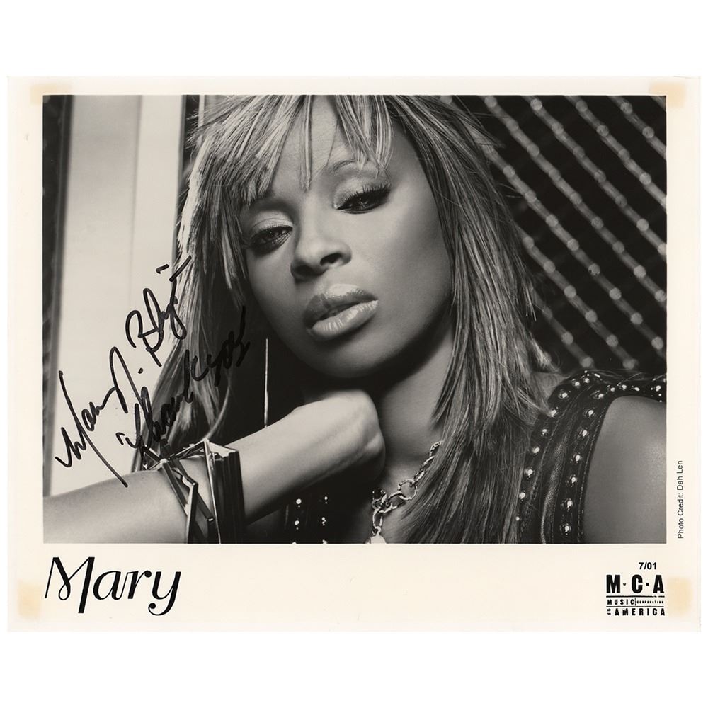 Satin-finish 10 x 8 MCA Records publicity photo, signed in black felt tip, "Mary J. Blige, Thank You." In fine condition, with small areas of toning at the corners.