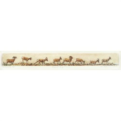 Mary Anna Lehman (b. 1920) "Desert Big Horn" 48/50 Color Etching Signed lower right 1975 1" x 10"