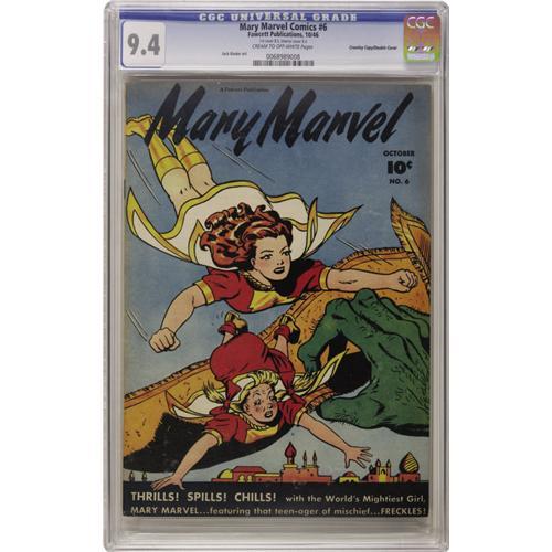 <B>Mary Marvel Comics #6 Crowley Copy/Double Cover (Fawcett, 1946) CGC NM 9.4 Cream to off-white pages.</B></I> Jack Binder art. CGC notes, "1st cover 8.5, interior cover 9.4." Overstreet 2006 NM- 9.2 value = $485. CGC census 10/06: 1 in 9.4, none higher.<BR><BR><b>Shipping:</b> Slabbed Comic (<a target="_blank" href="http://www.heritageauctions.com/common/shipping.php">view shipping information</a>)