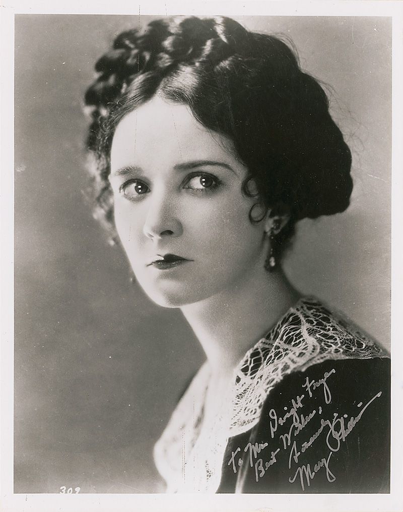 Glossy 8 x 10 photo of the silent film actress and Phantom of the Opera star, signed and inscribed in silver ink to “To Mr. Dwight Frye, Best Wishes, Sincerely, Mary Philbin.” In fine condition, with some vertical streaking and a ding to the top border. The elder Frye appeared in films such as Dracula (1931), Frankenstein (1931), The Invisible Man (1933), and Bride of Frankenstein (1935) before dying of a heart attack when his son was 14. This photo offers an interesting link between two early horror film stars.