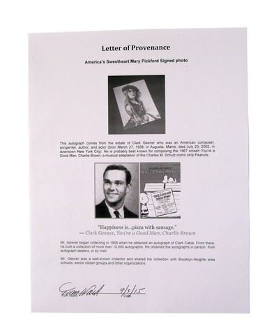 Mary Pickford Original Signed 8 1/2 x 6 1/2 Photo as Dorothy Vernon of Hadden Hall 1924 From The Clark Gessner Collection. Includes COA.