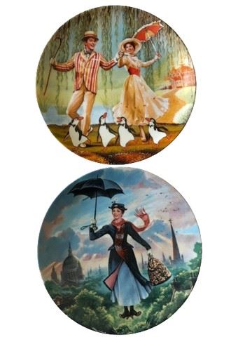 A collection of Knowles collectible plates for Mary Poppins. Includes plate number 1714A which is a limited edition and the first issue in the collectors plate features Mary Poppins. The second plate in the issue of this series is called A Spoonful of Sugar. It is plate number 2692A from 1989. The third plate in this series is called A Jolly Holiday with Mary. This one has plate number 537A and is from 1990. The fourth plate in this issue is called We Love to Laugh and is plate number 71158 from 1990. The fifth plate in the series is called Chim Chim Cher-ee and is plate number 594A in this Limited edition series from 1991. The sixth and final issue in the collectors plate series is called Tuppence a Bag from 1991 and is labeled plate number 8110A. All plates are in perfect condition, have been stored in their original boxes for years. They also come with a certificate of authenticity.