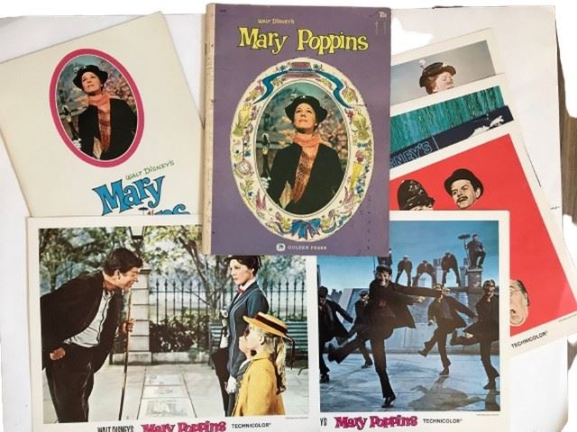 A collection of six Mary Poppins 11 x 14” publicity pictures, a Mary Poppins publicity booklet, and another Mary Poppins publicity booklet featuring the cast and photos of the film - both are from 1964.