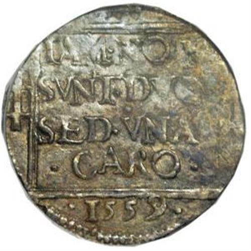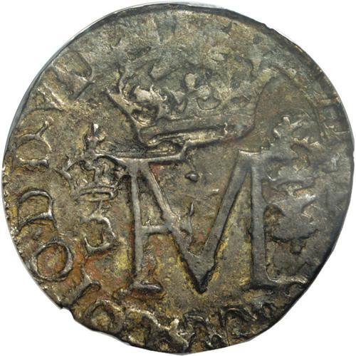 <B>Mary, Queen of Scots (1542-67), billon Groat 1559, </B></I>Spink-5448, VF35 PCGS, the grade implying Good VF, which is a reasonable grade even for UK bidders. Usual difficult-to-read legends because of both engraving and strike. Surfaces a mottled dark gray. The "FM" conjoined monogram is for Francis and Mary, Francis being her first husband (the French dauphin). The abbreviated Latin legend in the reverse cartouche translates as "They are no more twain but one flesh" (Matthew XIX:6), appropriate for this "marriage issue." Historical and fairly rare in nice grade such as this.