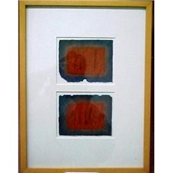 Mary Spinelli, "Double Red", signed (L.R.), water medium, image measures 9 1/2" x 5 1/4", framed