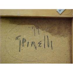 Mary Spinelli, oil on board, abstract landscape, signed on reverse, framed, image measures 24" x 24"