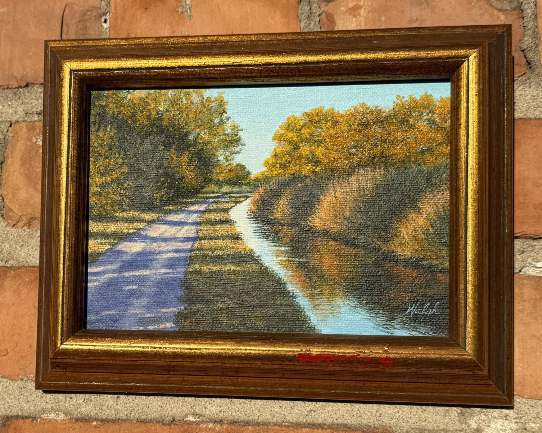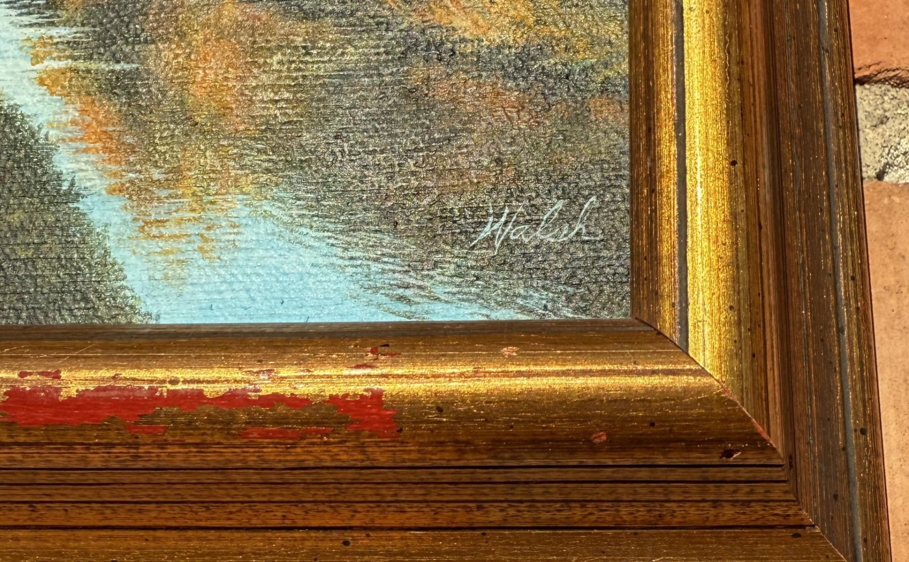 Title is Tinnin Land. Oil on Board. 6 1/2" by 8 1/2" framed. Mary Sue Walsh (20th century) was active/lived in United States. Mary Walsh is known for Landscape painter.
