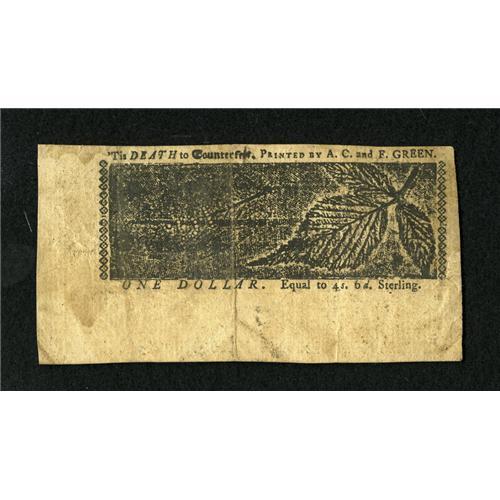 Maryland April 10, 1774 $1 Extremely Fine. A cri