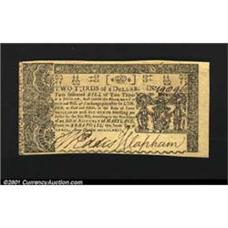 Maryland April 10, 1774 $2/3 Choice About New.<p>A single light corner fold away from the Gem New grade. Another incredible Maryland from this great collection of Colonial Currency. Important notice: We expect to be auctioning lots at the rate of 200-250 per hour. Sometimes eBay Premier live bid software cannot keep up with that pace, so we strongly recommend that you place a realistic proxy bid now as insurance to avoid disappointment. Also please note that all Heritage/CAA lots purchased through eBay Premier carry a 20% Buyer's Premium.