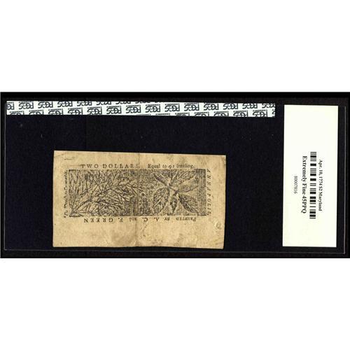 Maryland April 10, 1774 $2 PCGS Extremely Fine 45PPQ. B Maryland April 10, 1774 $2 PCGS Extremely Fi