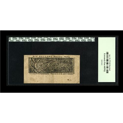 Maryland April 10, 1774 $6 PCGS Extremely Fine 40PPQ. A