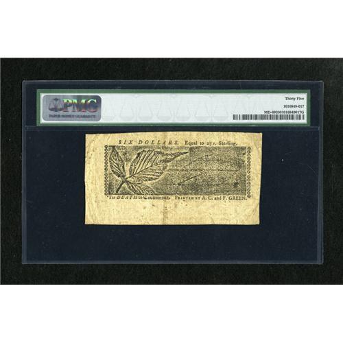 Maryland April 10, 1774 $6 PMG Choice Very Fine