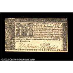 Maryland April 10, 1774 $8 Choice Extremely Fine. Well margined, bright and attractive, with the app