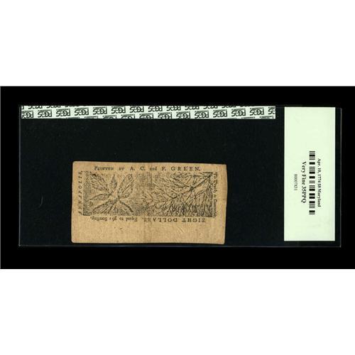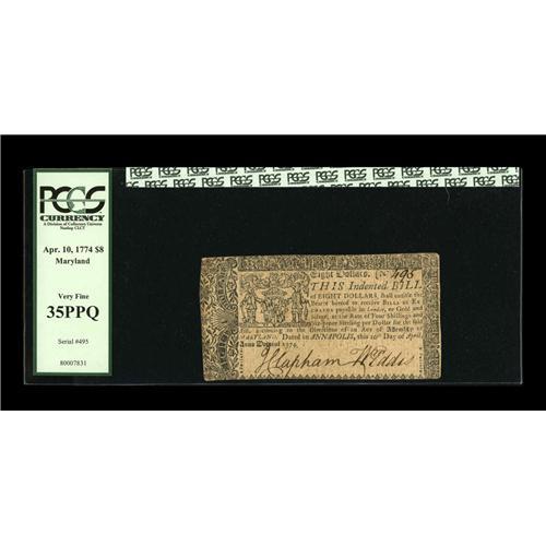 Maryland April 10, 1774 $8 PCGS Very Fine 35PPQ. Closel Maryland April 10, 1774 $8 PCGS Very Fine 35