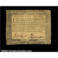 Maryland June 8, 1780 $4 Extremely Fine. This is only the third example from this rare issue that CA