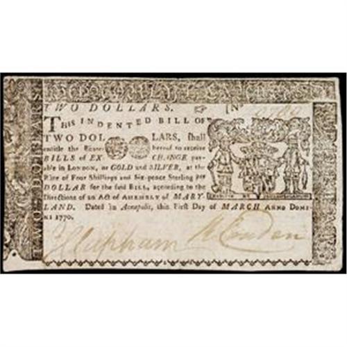 Maryland, March 1, 1770, $2, Choice Crisp Extremely Fine.