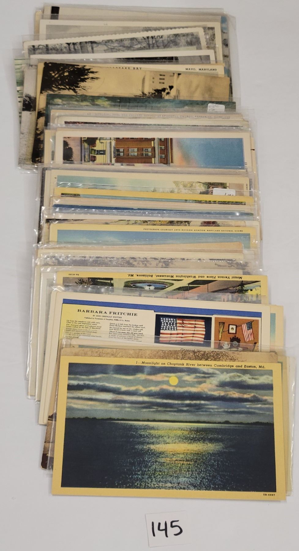 Approx. 65 MD postcards. Linen.