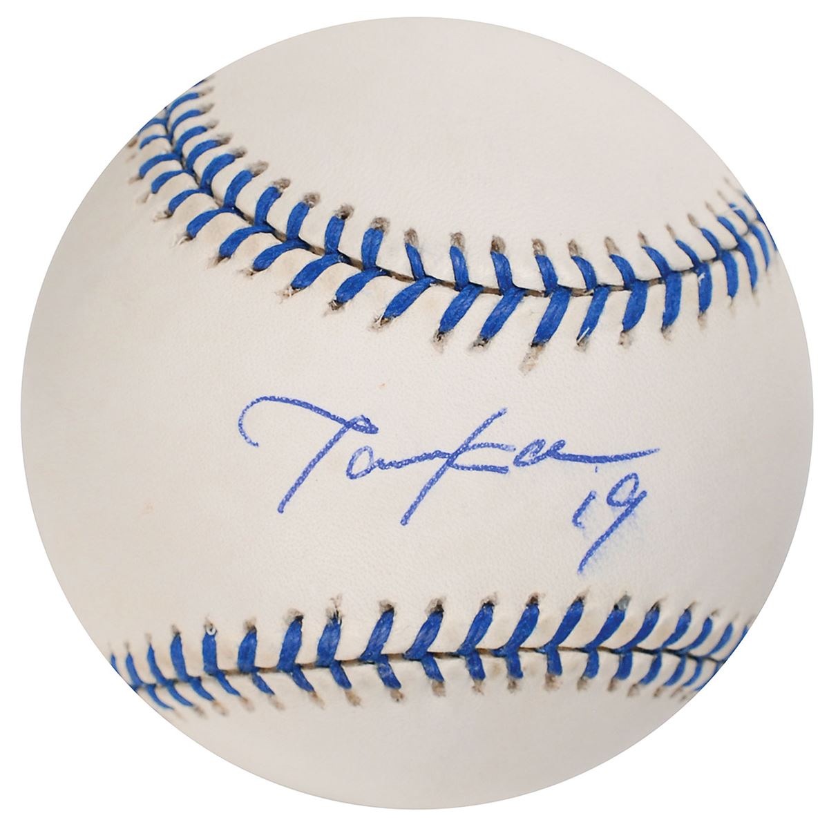 Official Rawlings American League (Budig) baseball signed in blue ballpoint on the sweet spot, “Tanaka, 19.” Trivial soiling and some brushing to his number, otherwise fine condition.
