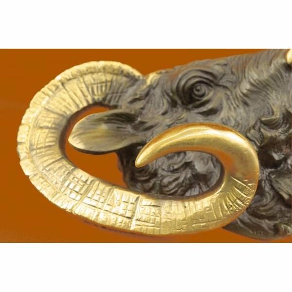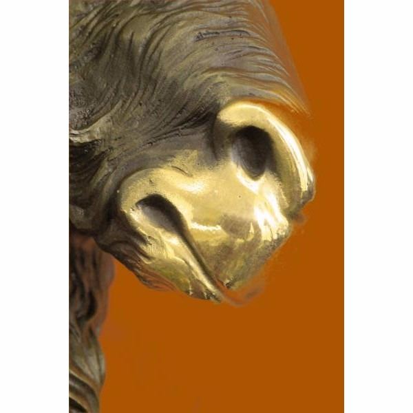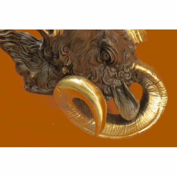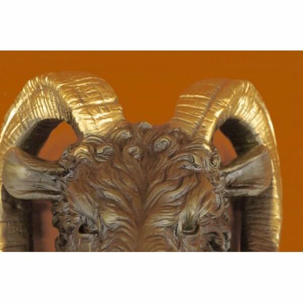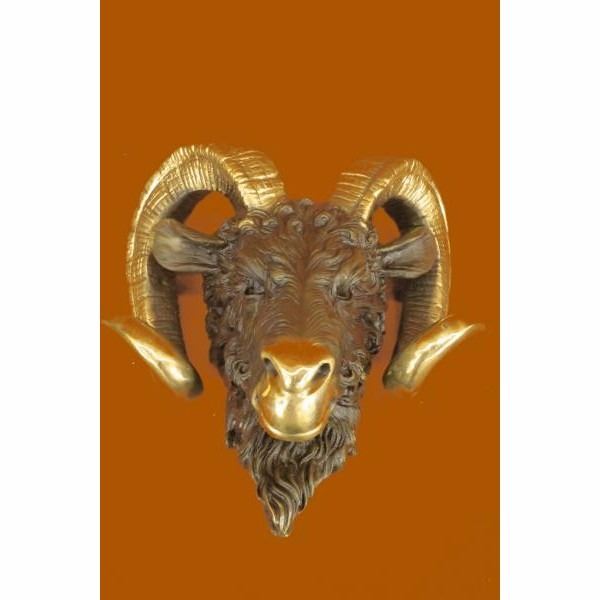 The ram has much cultural and religious significance throughout the world's ancient civilizations including that of Egypt where the ram is thought to have been venerated due to its warlike attributes. It is also associated with fertility. Here, our bronze sculpture of a proud ram, probably based on a bighorn sheep, adds a fine statement for a desk or tabletop.100% bronze and handmade, this brown patina sculpture was cast using the Lost Wax Method and can be mounted on wall. Bronze Dimensions: Height 12 X Width 11 inches. Weight: 12 LBS. Please Note: This is a reproduction bronze sculpture from the original molded and signed. This featured bronze sculpture is a recast after the original, and has been done recently. This 100% bronze sculpture is an abstract piece certain to be a conversation piece.
