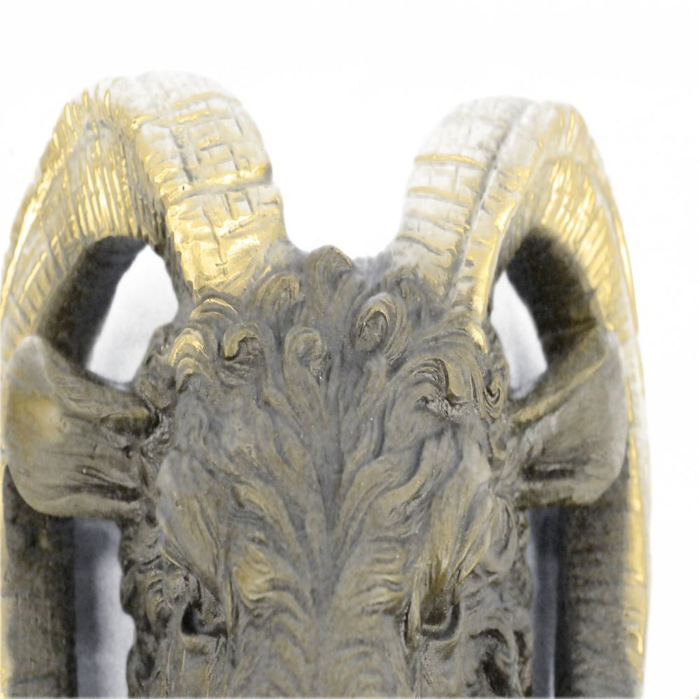 The ram has much cultural and religious significance throughout the worlds ancient civilizations including that of Egypt where the ram is thought to have been venerated due to its warlike attributes. It is also associated with fertility. Here, our Bronze Sculpture of a proud ram, probably based on a bighorn sheep, adds a fine statement for a desk or tabletop. This brown patina Sculpture was cast using the Lost Wax Method and can be mounted on wall. Bronze Dimensions: Height 12 X Width 11 inches. Weight: 12 LBS.