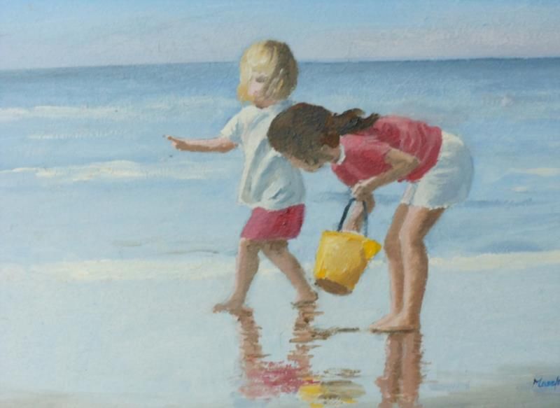 Oil On Board , "The Yellow Bucket" Signed MASEFIELD Dimensions: Frame: 63 x 36 Board: 29 x 22