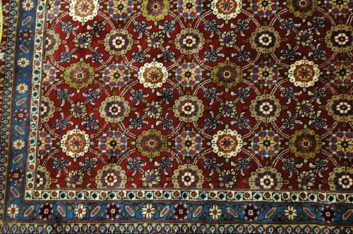 Hand knotted Mashhad geometric rug. 6'9" x 3'7"