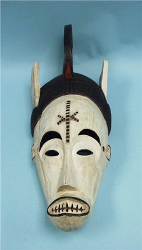 Mask Igbo. A large carved and hand painted wooden African tribal mask from the Niger Region. 8" wide, 21" high.