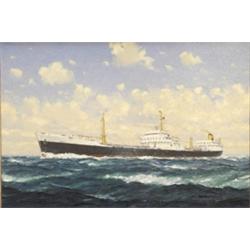 Masoau Macfarlane - Oil on canvas 'The Stas Axina del Tanker built by Lithgoes Limited', 50cm x 75cm