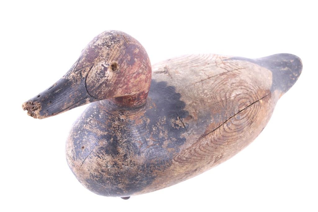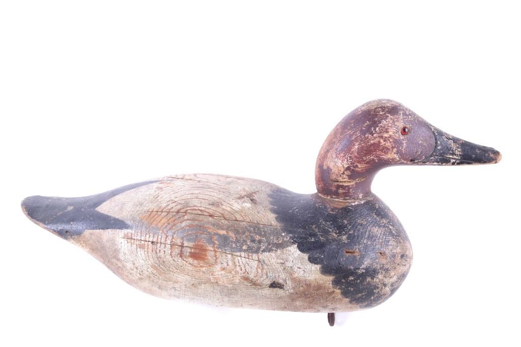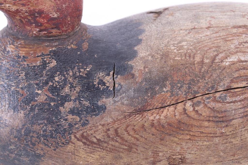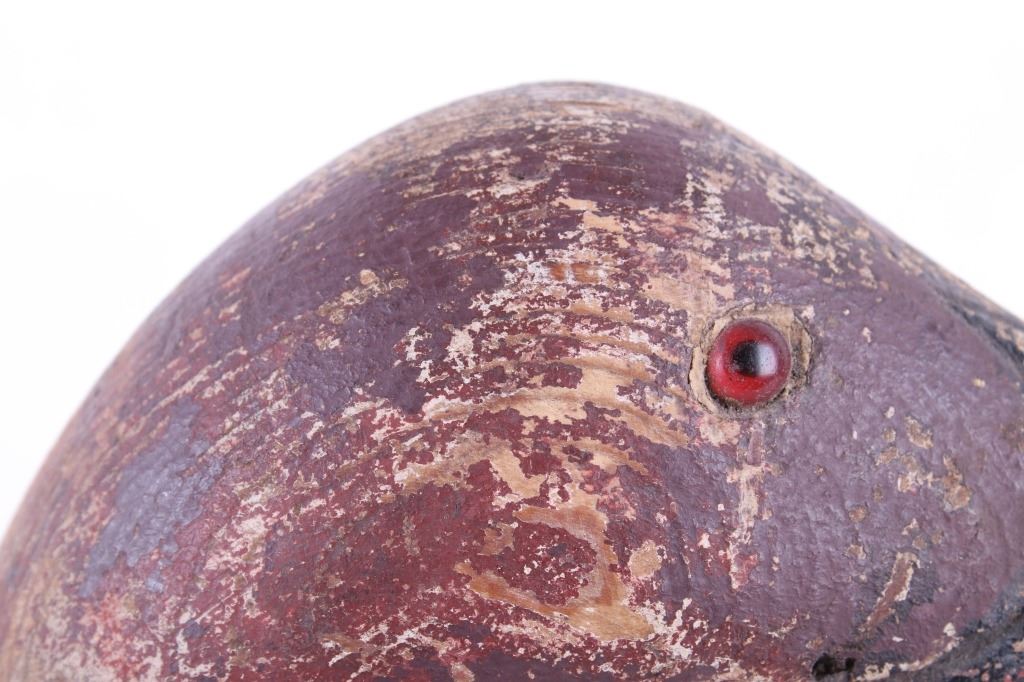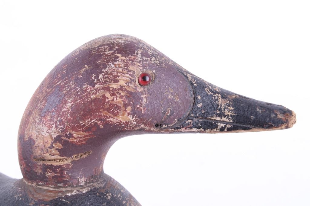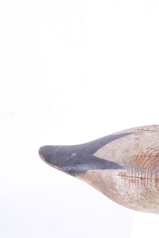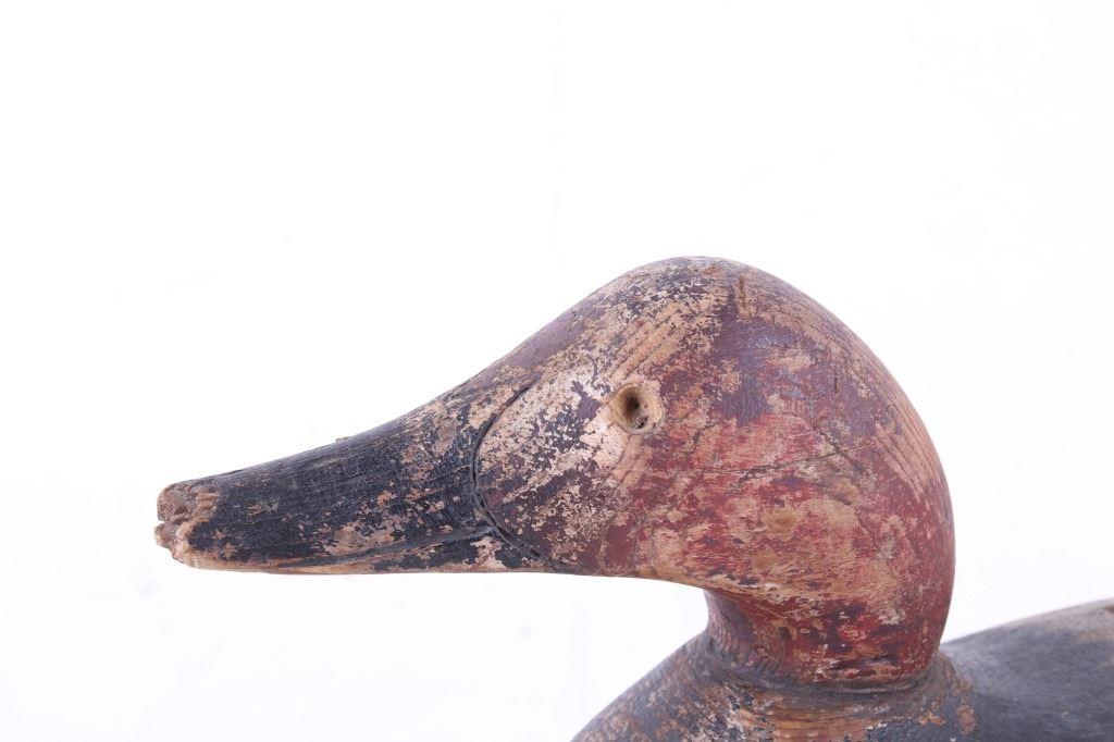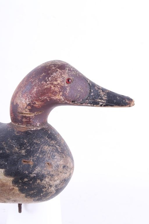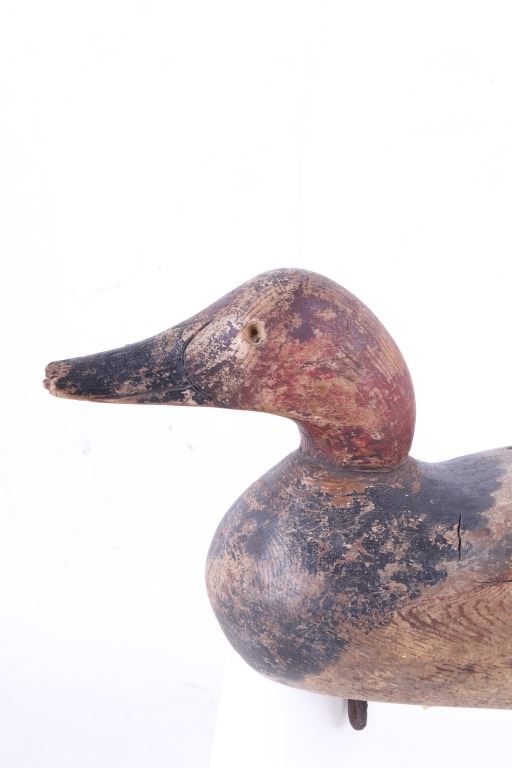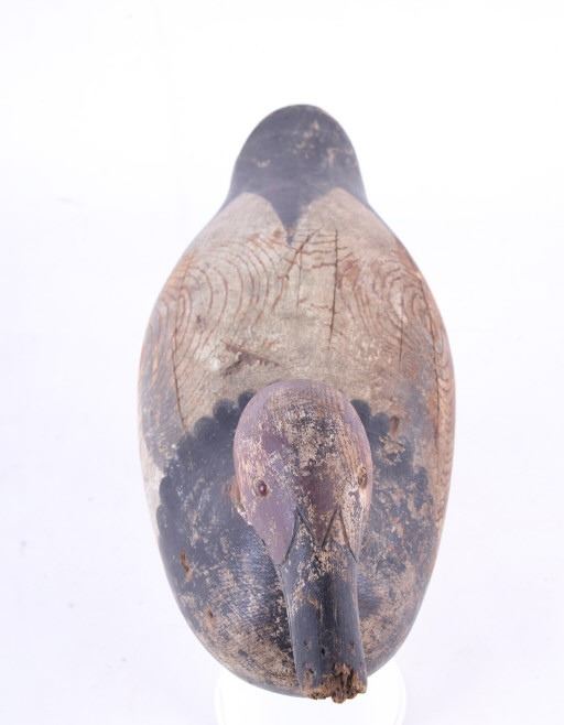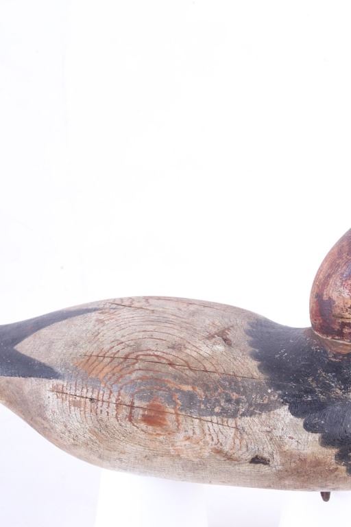For your bidding pleasure is this Mason Can Challenge Grade Redhead Decoy. This Redhead decoy is made by Mason Can and is a Challenge grade decoy. The hen show more age to her with a missing eye and some cracks to the frame of the decoy. This decoy shows original paint to it and shows the customary carving to the beak, that is usually adorned to this grade of decoy. There is a chip to the beak but still shows to be in usable showing. In the early 1900s the Mason Decoy Factory (1896-1924) of Detroit, Michigan, advertised themselves as the "Largest Manufacturers Of High Grade Decoys In The World!" The current record price--$354,500--for a factory decoy was set by a Mason Premier wood duck drake in January 2000. The measurements of this decoy are 7 1/2" x 15" x 5 1/2".