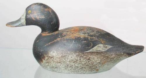 Mason Premier bluebill hen in original paint with a fair amount of wear. Struck by shot. (decoy)