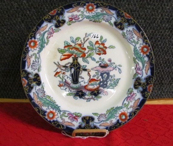 19th Century Mason Stoneware Plate, Handpainted with flowers and vases, condition with age