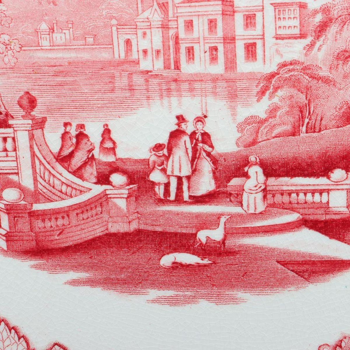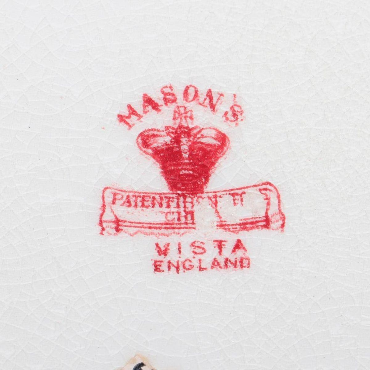 A red and white charger stamped "Masons/ [crown]/ Patent Royal China/ Vista England". Measuring15 1/2in diam. Condition: Crazing; no chips/cracks. Condition Report: All lots are sold as is and where is. Turner Auctions + Appraisals, LLC provides condition reports upon request to aid in your bidding decision. No statement regarding age, condition, kind, value, or quality of a lot, whether made orally at the auction or at any other time, or in writing in this catalog or elsewhere, shall be construed to be an express or implied warranty, representation, or assumption of liability. All sales are final, Turner Auctions + Appraisals, LLC does not give refunds based on condition. Turner Auctions + Appraisals, LLC does not perform any shipping or packing services. We do have a list of suggested shippers who gladly provide quotes prior to your bidding. Please visit our webpage for a list of recommended shippers.