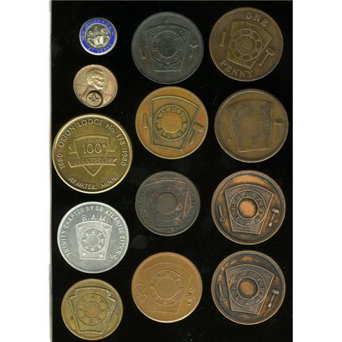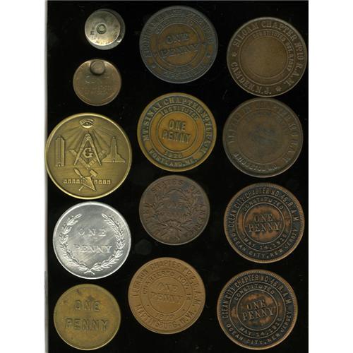 Masonic Chapter Penny Group Lot. Seventeen miscellaneou