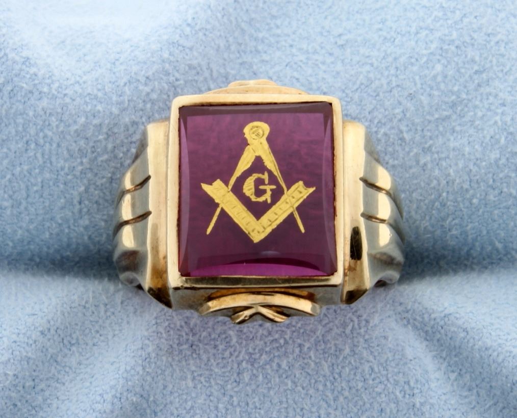 The ring is 10K yellow gold and a size 9 1/2. 8.4g